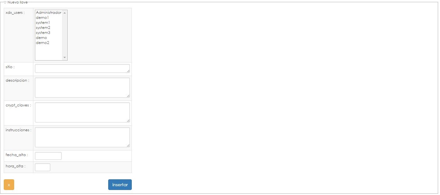 Dentro de almacen - nueva llave encontramos un menú para añadir llaves: