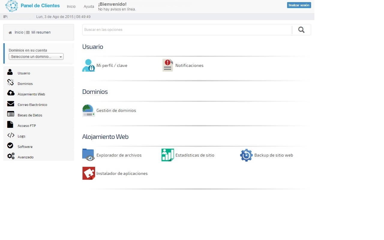 SN Panel es una aplicación online diseñada y desarrollada por trabajadores de nuestra empresa, con la que cualquier cliente de hosting puede realizar las tareas necesarias para gestionar su alojamiento.